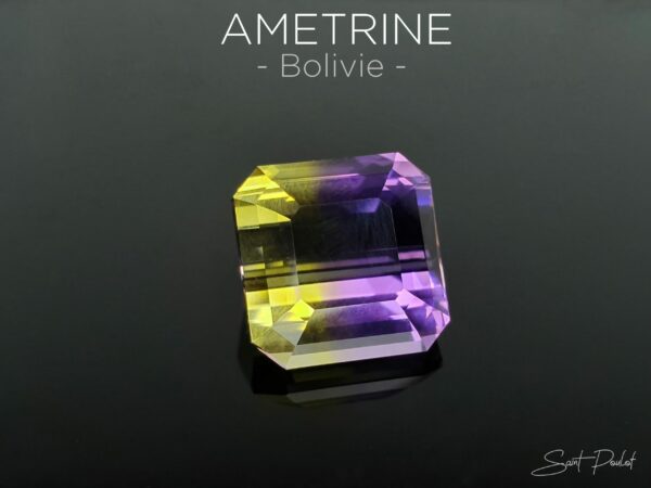 l’Amétrine est une variété de quartz qui n’est pas une variété d’améthyste mais un mélange de citrine et d’améthyste.