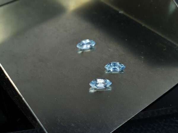 – Topaze bleue ciel, taille marquise ou navette de 6×3 mm en provenance du brésil.