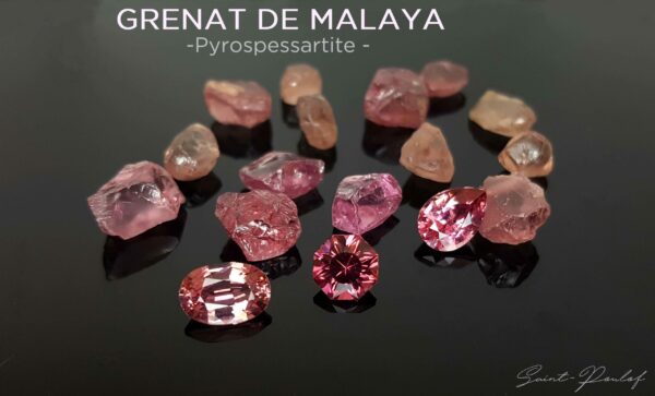Le Grenat de Malaya est une rare variété de grenat issue d’un mélange de Pyrope et de Spessartite. Cette variété de grenat propose des Tonalités de couleurs allant du Rose poudré, rose Lotus et rose pastel. Le grenat de Malaya est une variété de Grenat très lumineux, il possède la particularité de changer de couleur en fonction de la lumière !