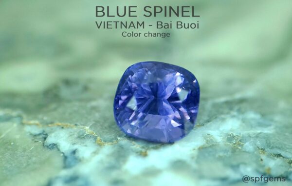 Spinelle naturel cobalt à changement de couleurs du nouveau gisement de Bai Buoi ( découvert en 2019) , Rare et très éclatant.