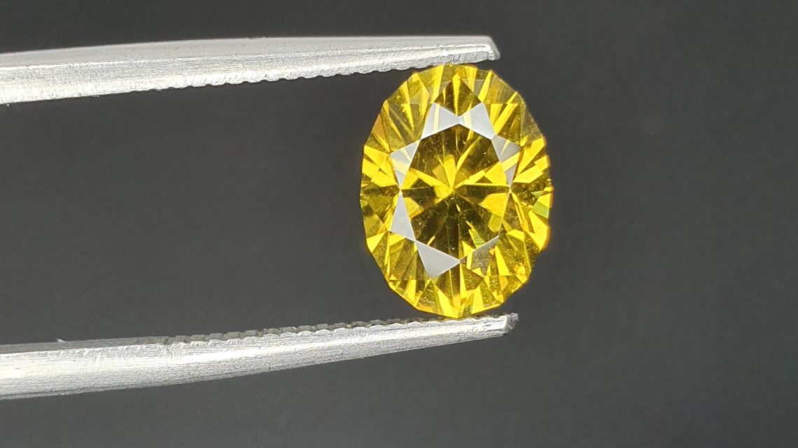 4/ Enfin, la dernière phase de chauffage a eu pour effet d’éclaircir définitivement la pierre. Le jaune devenant la couleur quasi exclusive d’une brillance qui n’appartient qu’au zircon, la pierre conserve tout de même quelques sous teintes. Elle affiche désormais un couleur brillante et soutenue.